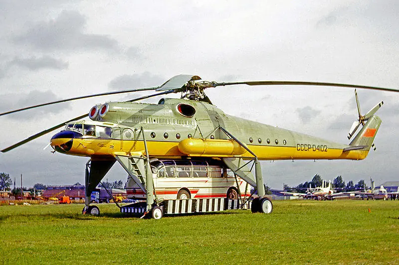 1965 metais Mi-10 apsilankė Paryžiaus aviacijos parodoje. Parodos lankytojus šis įspūdingas sraigtasparnis nustebino ne tik ilgomis kojomis, bet ir LAZ autobusu papilvėje – net ir su šiuo kroviniu Mil-10 lengvai pakildavo ir nuskrisdavo tolyn. Ilga važiuoklė leido labai tvirtai įsprausti platformą su autobusu, todėl šio krovinio nereikėjo kabinti prie sraigtasparnio papilvės, kaip skraidantys kranai naudojami įprastai. Tai skrydžiui suteikė stabilumo ir palengvino pilotų darbą.